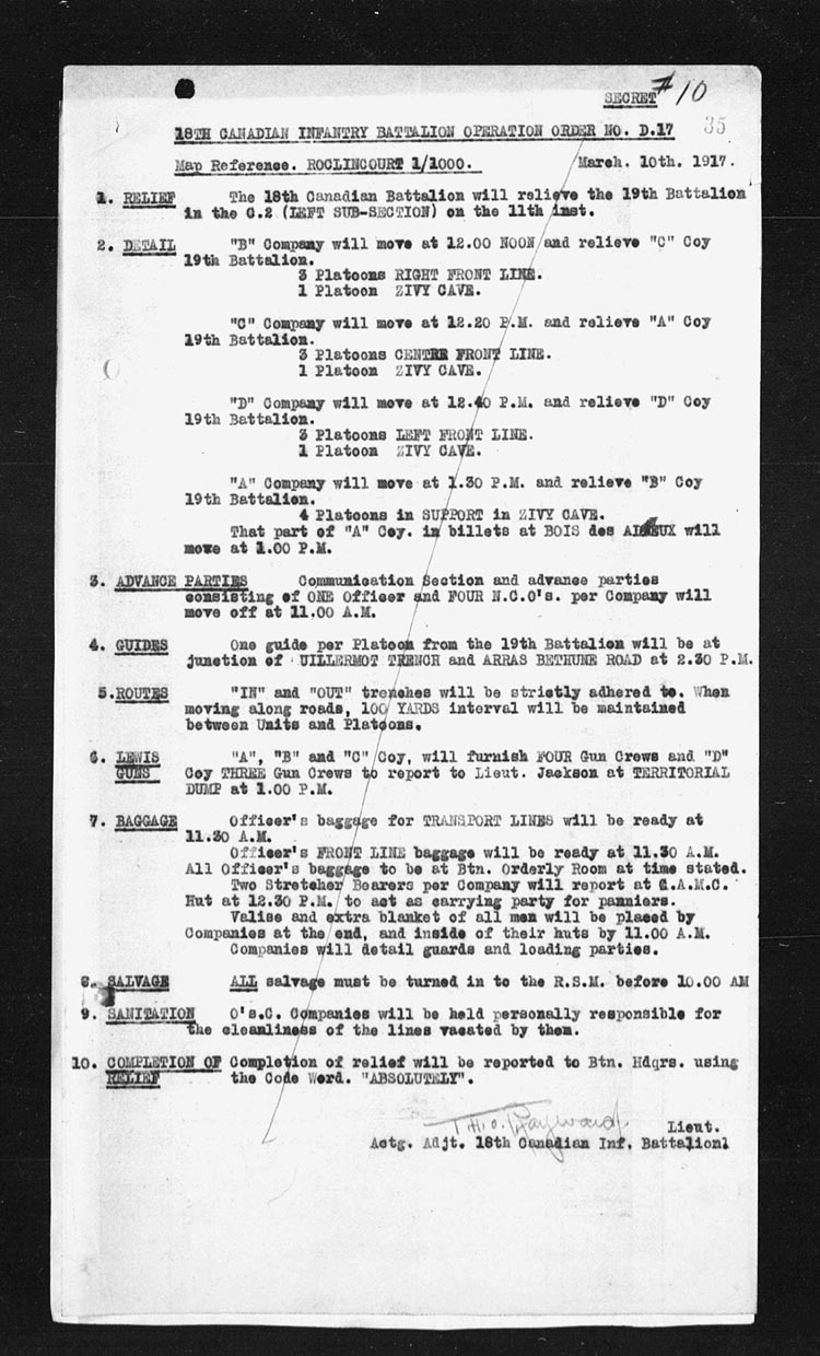 [iii] 4th Canadian Infantry Brigade, Orders Relating to the Defense of Zivy Subway, March 11, 1917
