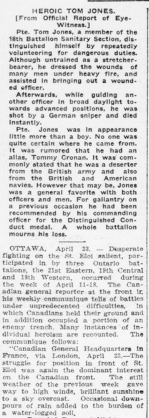 Transcription of news story in London Advertiser dated April 24, 1916, page 9, to follow.