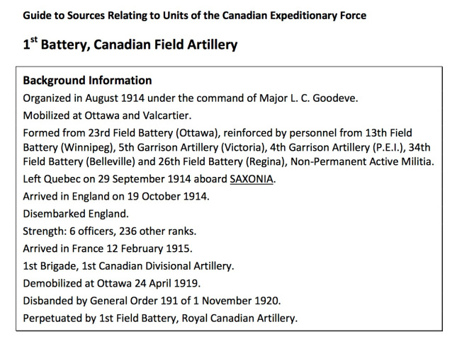 An example from the “Guide to Sources Relating to Units of the Canadian Expeditionary Force”
