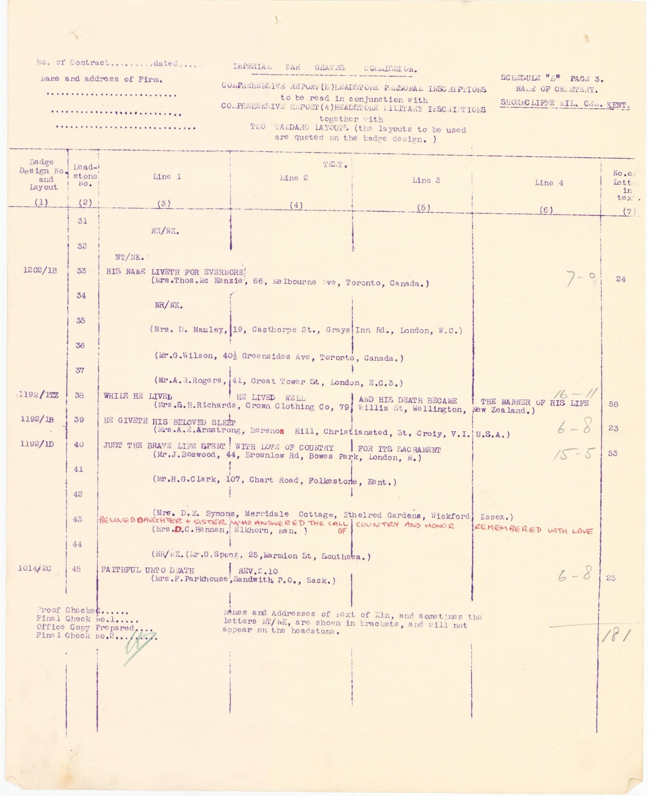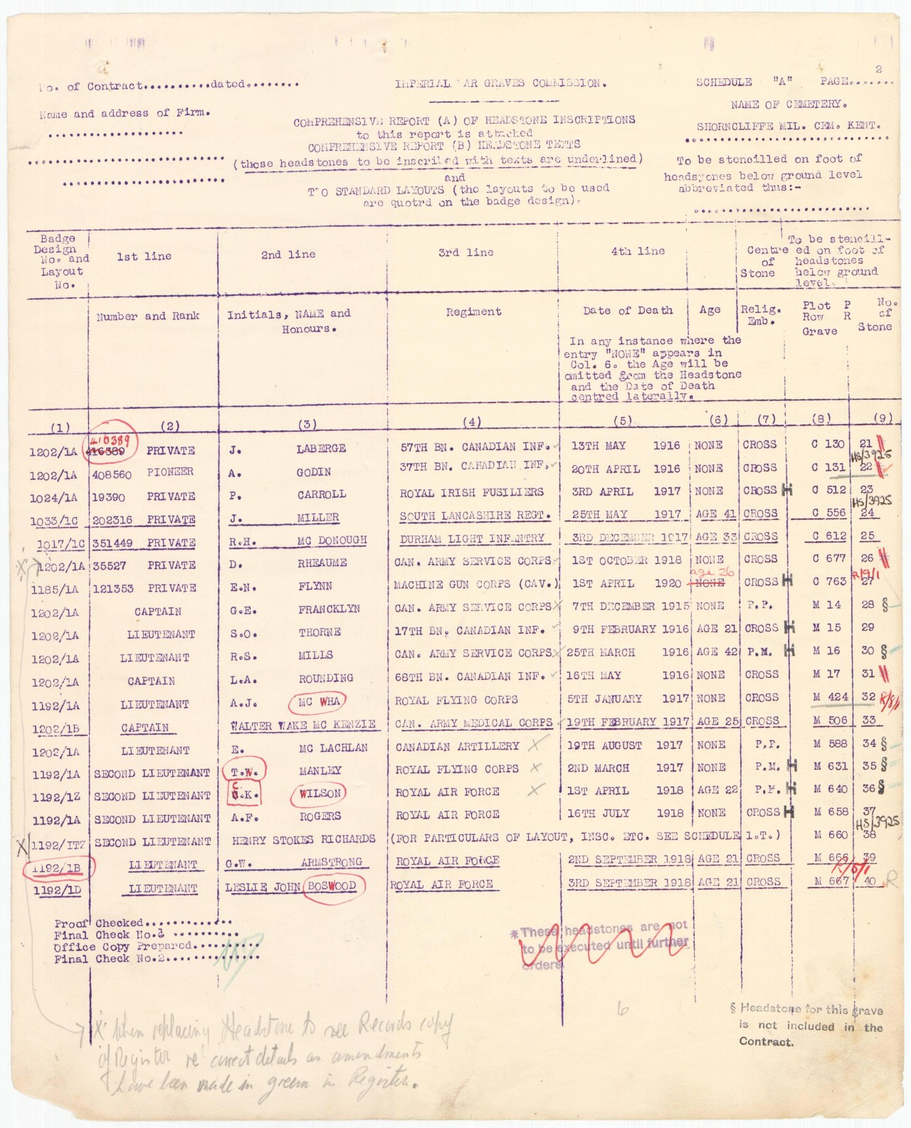 It is curious that he listed his sister as his next of kin at the time of attestation, his profession as being related to the electrical business, and that his grave has not special epitaph or sentiment on it. Below is a picture of the comprehensive list of gravestones listing any markers that had special inscriptions on them. Though this document is not dated it is sensible to believe that the Commonwealth War Graves Commission worked hard after the war to record any requests from families and meet those requests. Perhaps the McLachlin family was so heart broken by their loss that no inscription was deemed warranted.