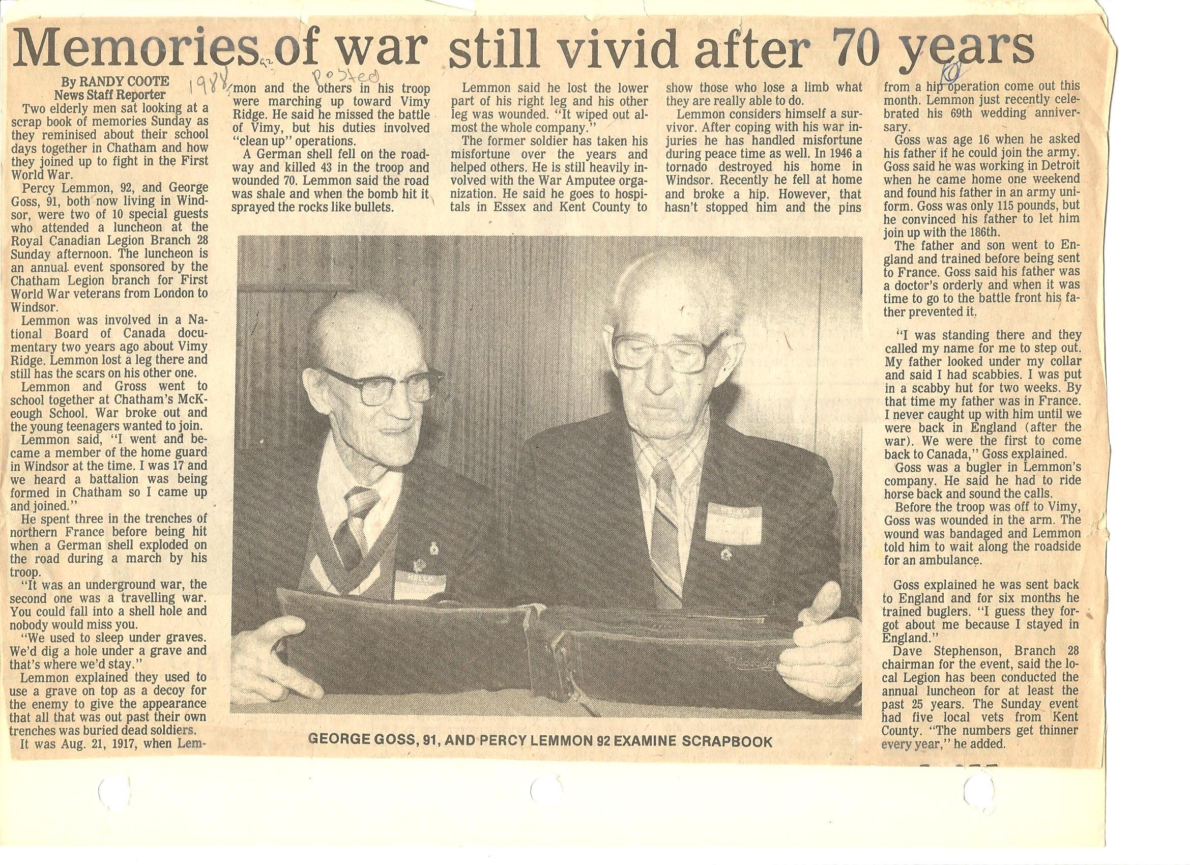 As often happens in research one soldier’s research leads to another. During the research into Private Percy Lemmon one of the news articles shared with me shows another soldier who served in the 18th Battalion, George Goss.