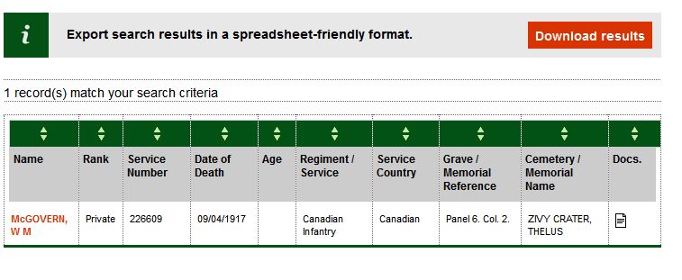 See Private William Mathew McGovern’s soldier’s page to see the results.