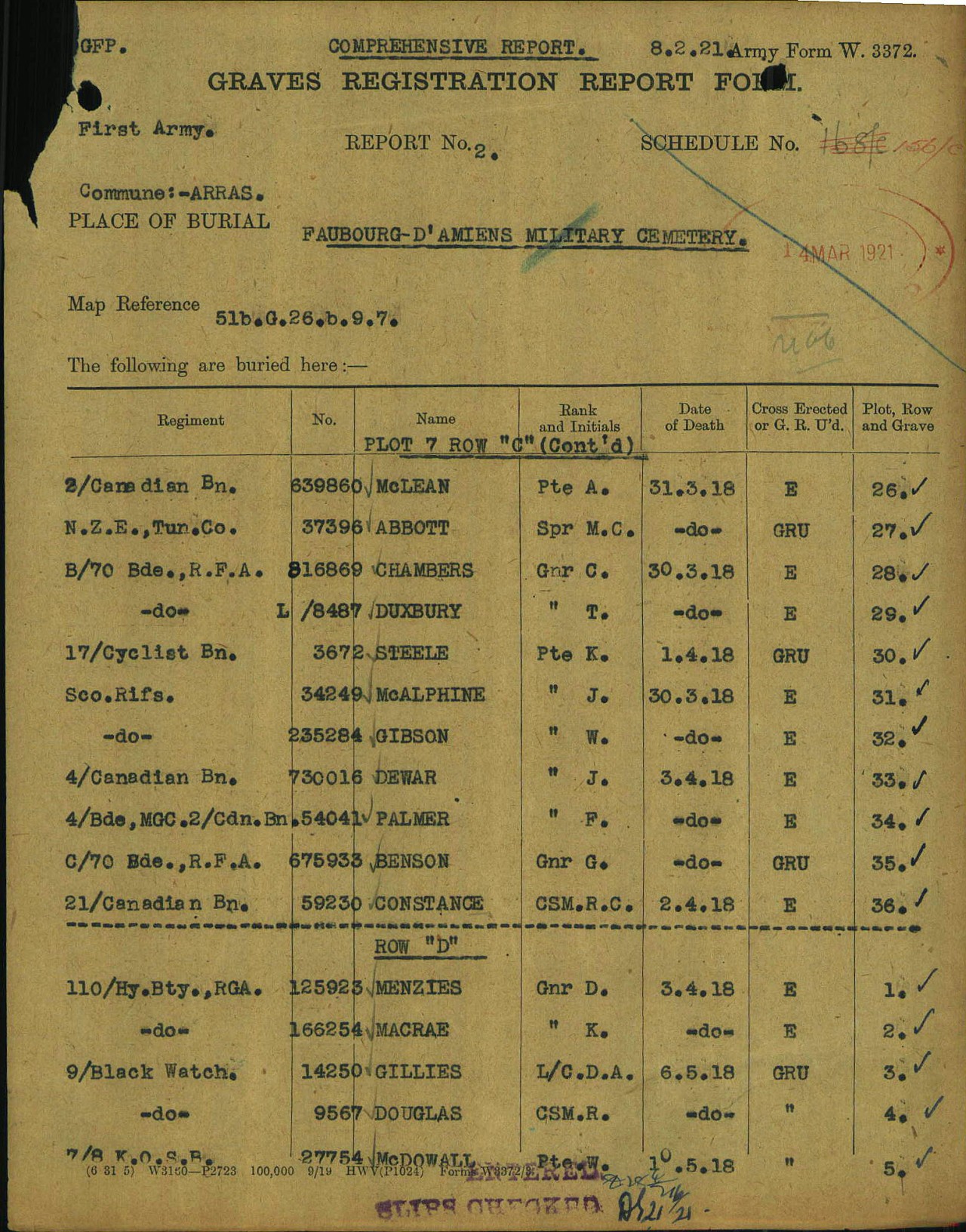 Some samples from John Taylor Dewar’s CWGC documentation is as follows: