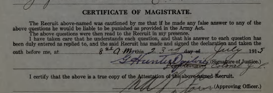 [ii] The time notation on this soldier’s attestation paper is unique and not seen before, to the best of my recollection.
