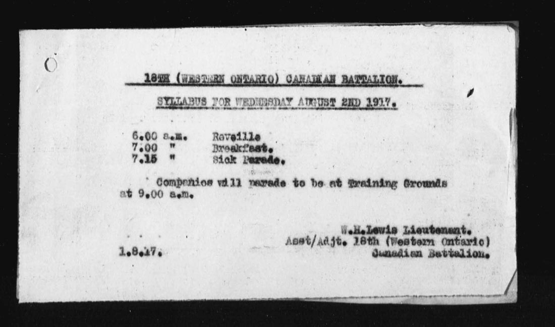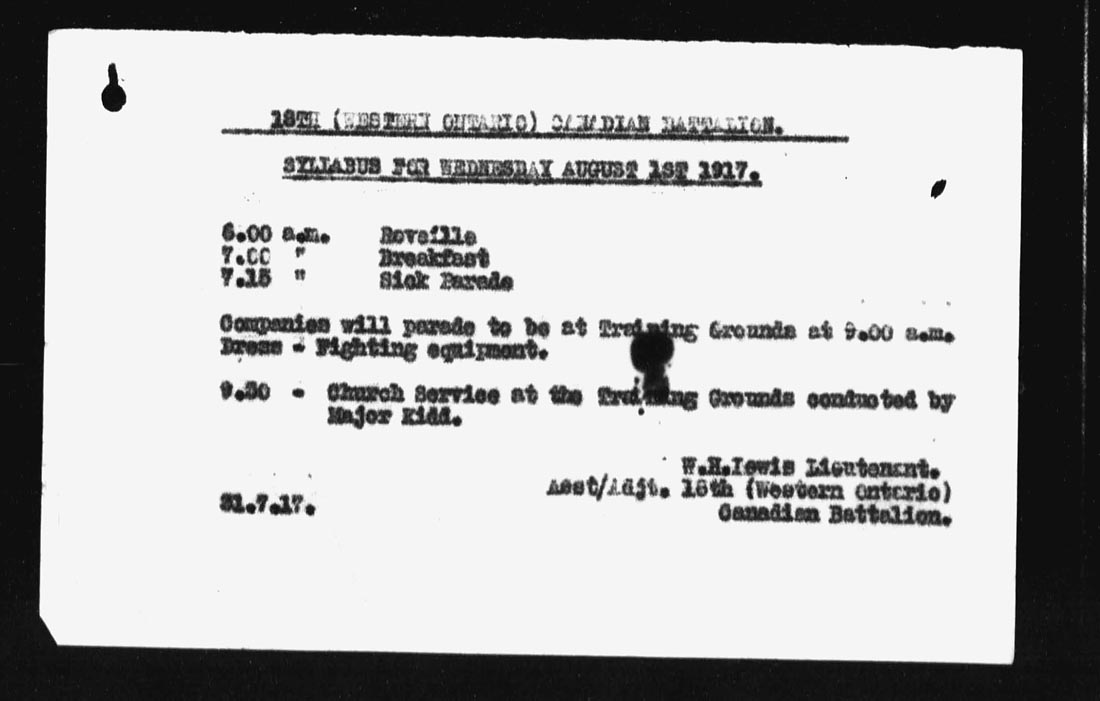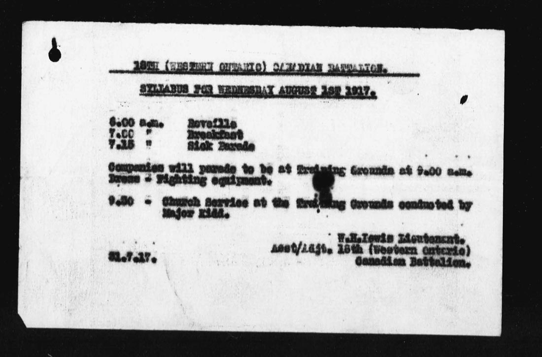 [ii] Lieutenant William Hampton was an original member of the 18th Battalion, attesting at Galt [now Cambridge], Ontario on October 25, 1914 with a regimental number of 53923. He was promoted through the ranks to Corporal and then assigned to officers training at Bexhill.