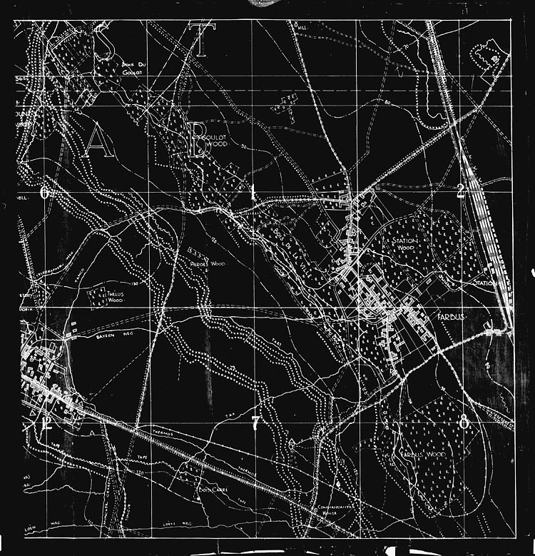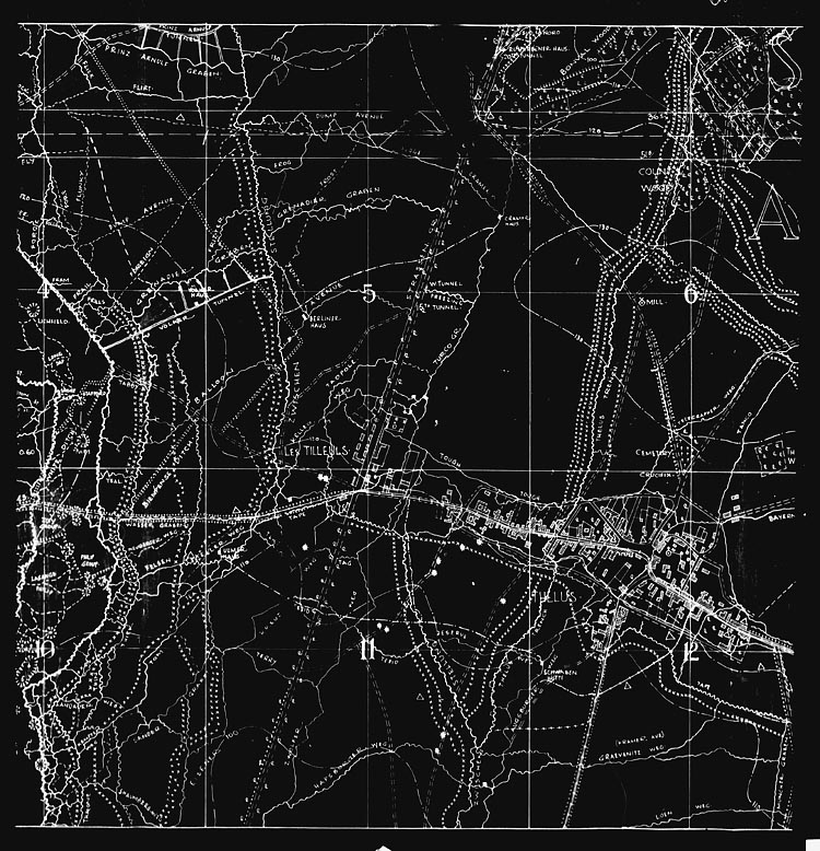 On Lieut. Dougall’s report regarding the conditions of the ground it was decided to vary the attack, to push across the Railway cutting from the trenches at N.12.b.0.15 and N.13.b.2.2 immediately [after] the artillery barrage lifted.