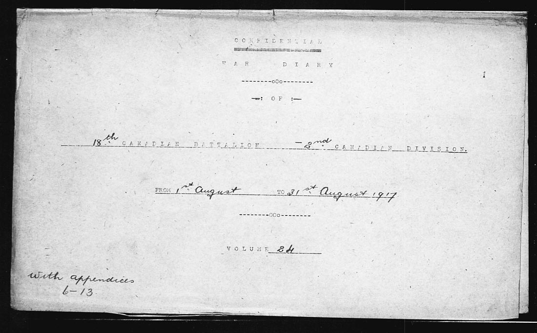 [iii] The death of Lieutenant MacDonald and the wounding of Lieutenant Sloan was due to friendly action. A soldier of “C” Company threw a grenade which resulted in this. This appears to be the first document case of friendly fire in the War Diary’s documentation. Source: “Summary Report of Hill 70 Action August 14 to 18, 1917”. 18th Battalion Canadian War Diary. August 1917.