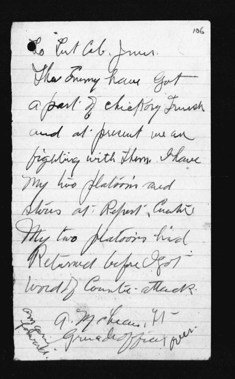 Lieut. G.G. Brachin [Brackin] arrived as reinforcement. | ||