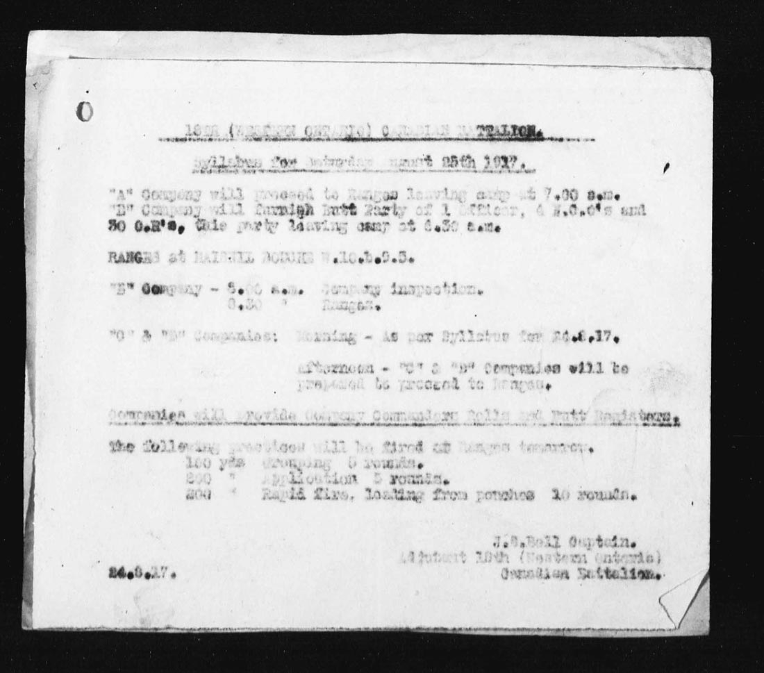 p.m. | Specialized training of Bombers, Lewis gunners, and Rifle grenadiers.