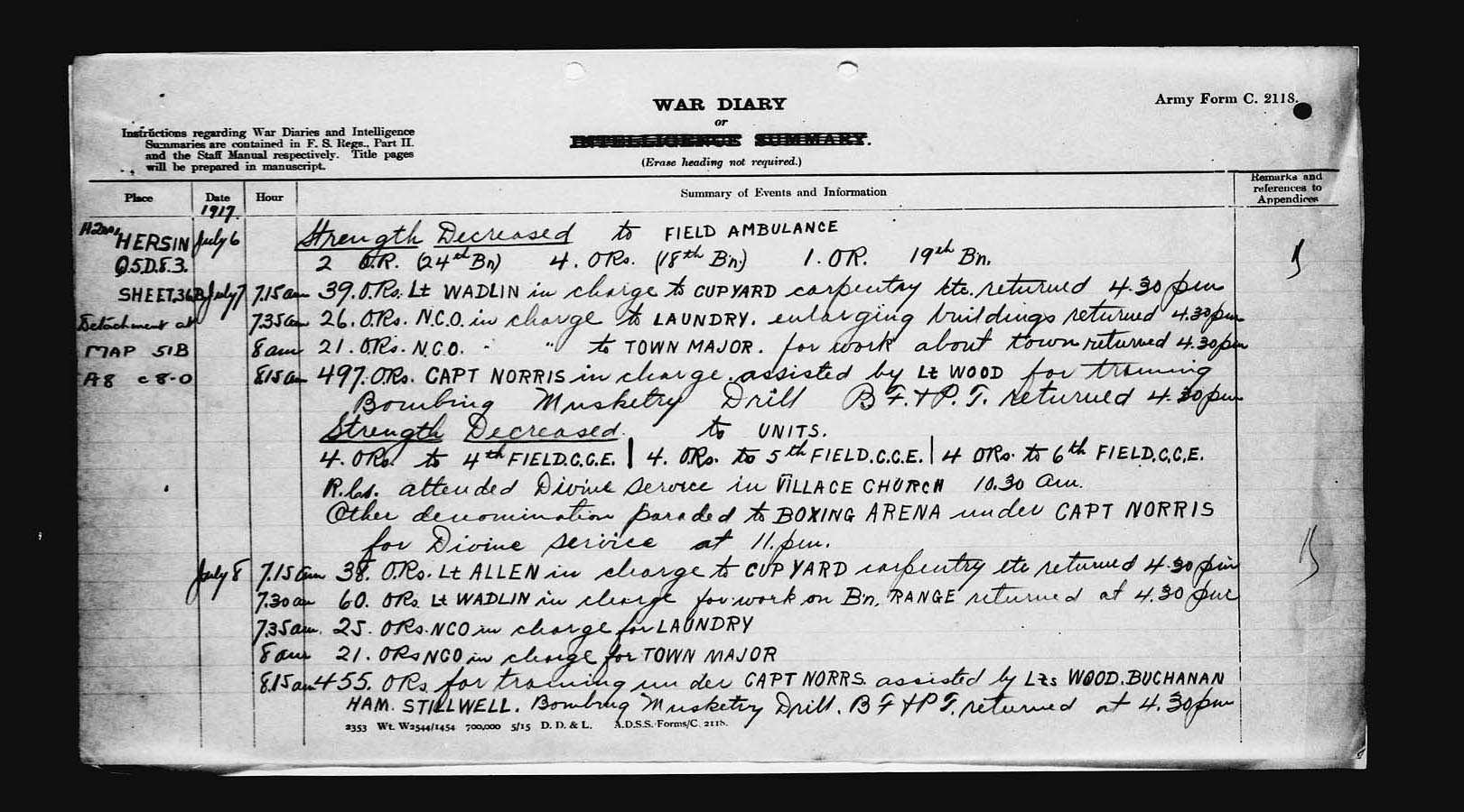 2nd Canadian Entrenching Battalion July 8 1917 Page 1