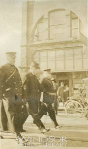 The_18th_Battalion_Leaving_Windsor_1914__Lt_Col_ES_Wigle_OC_18th_Battalion_Rev_Arthur_Carlisle_Lt_Col_Casgrain