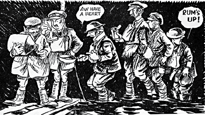 This example shows how humour derived from the collective experiences of a unit could be expressed in such a manner as to elicit a laugh. The wet and cold conditions were ripe for humour tinged with irony and this example deals with a ongoing threat to the Empire and the men’s friends and loved ones had to content when they crossed the Atlantic and the Channel. The water and mud up past the soldiers’ waists must have made them feel like aquatic combatants who would have benefitted from the use of submarines. Regardless of the impracticality of this idea, the fact that the issues with the water table and rain where so persistent the irony of the idea of spotting submarines in the trenches cannot be lost for its value in expressing this idea as amusing to the men reading the paper.
