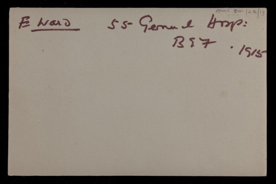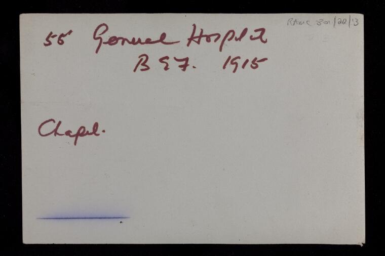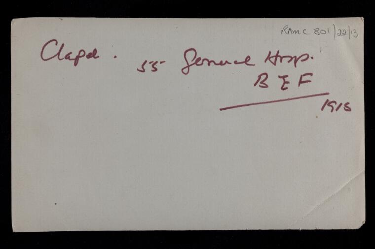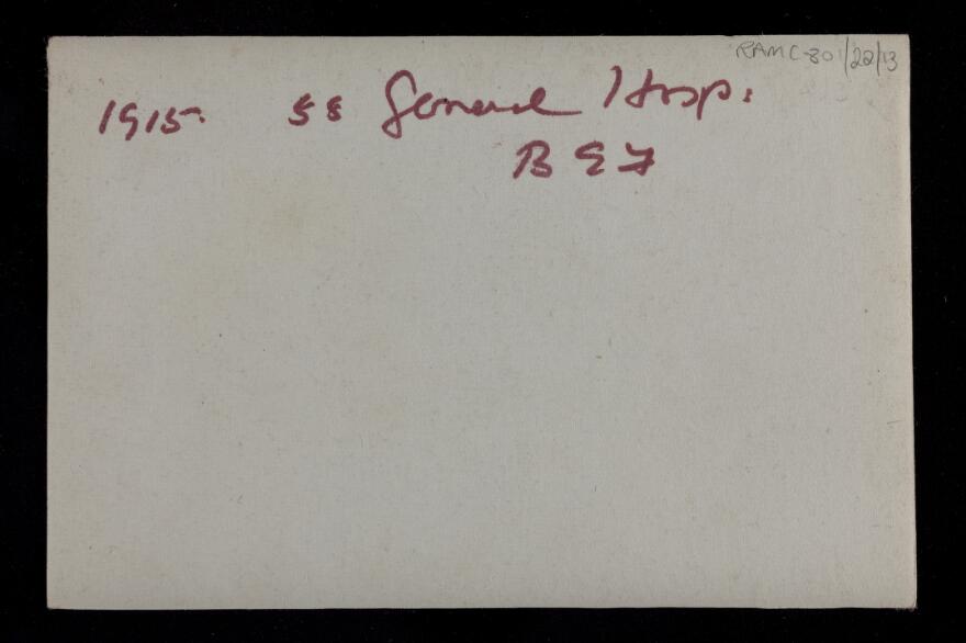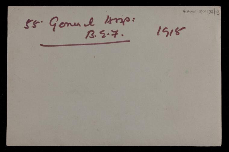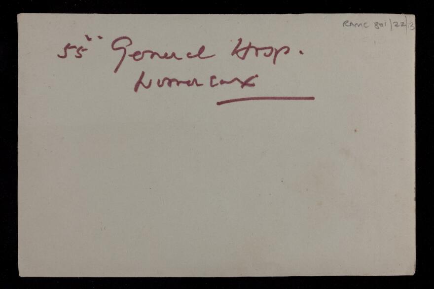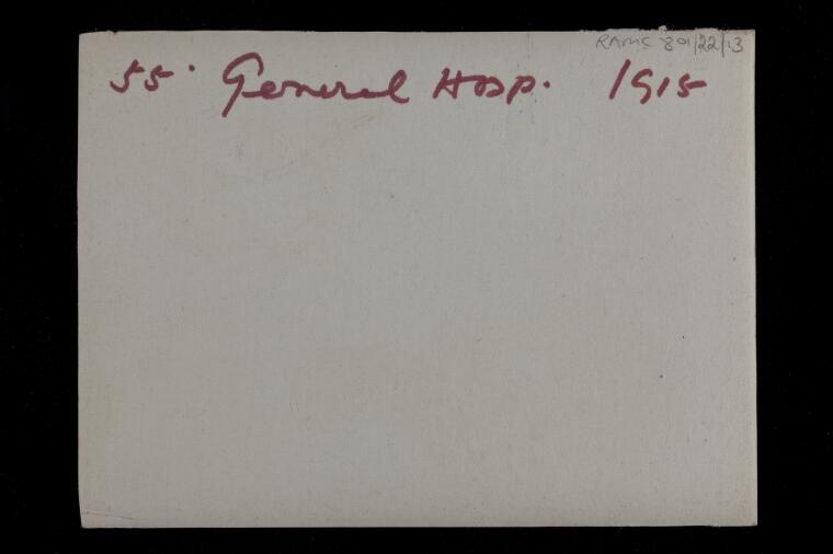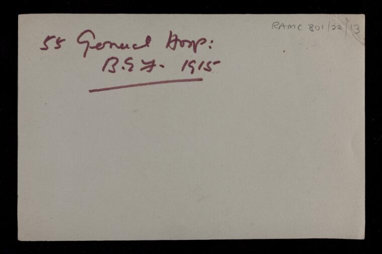 Below are a series of photographs dated 1915 of this facility. Most of the photographs are of buildings and infrastructure and the reverse of each photograph gives no commentary on the context of the image. They do, however, give an idea of the organization and infrastructure required to run just one of the many Hospitals that the Imperial Forces operated on the Continent, England, and other geographies of this conflict.