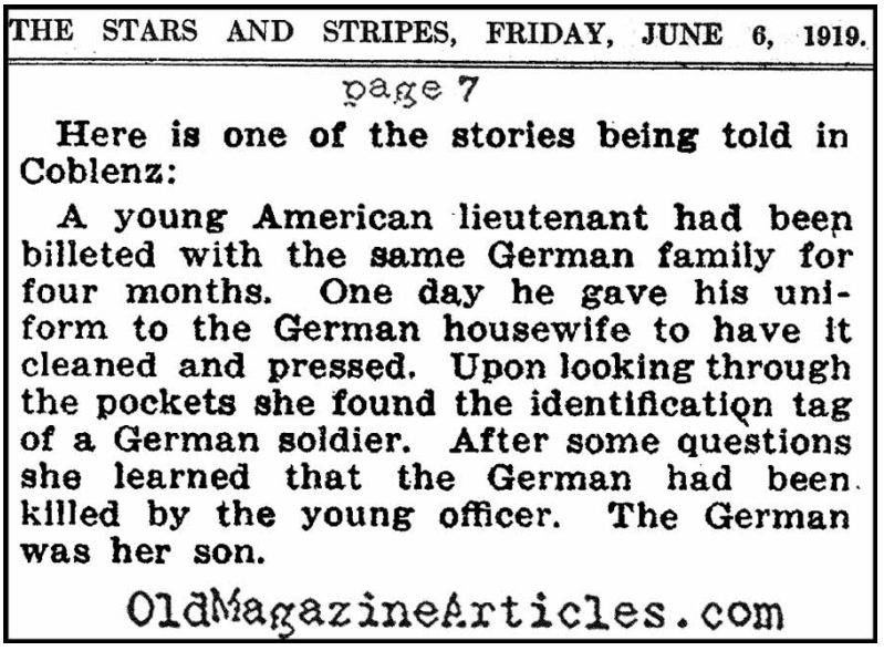 The news clipping was published on January 31, 1918, so Lieutenant Worth is probably relating an event that happened 3-weeks or a month prior to its publication.