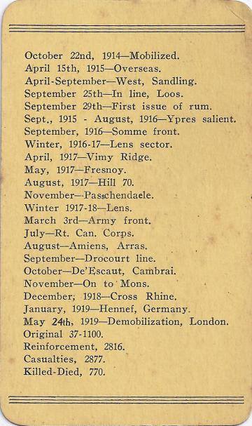 His brother, in contrast, enlisted with the 111th and arrived with the 4th Battalion on December 3, 1916, and, other than a spot of leave in December 1917, served uninterrupted with his battalion until his wounding and subsequent death.
