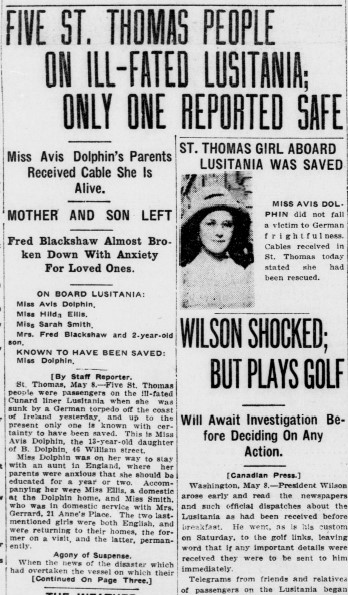 She and Warner were the only people from London to perish and reports in the London Advertiser on May 8 of five St. Thomas residents being aboard this ship illustrates the impact of this disaster to residents in the London area and the rest of Canada. According to The Lusitania Resource Canadian residents made up 366 of the passengers who perished, a clear 30% of all the dead. Yet, this disaster is seen as very much an American one as it was one of a series of events that would propel the Wilson administration to war in 1917.