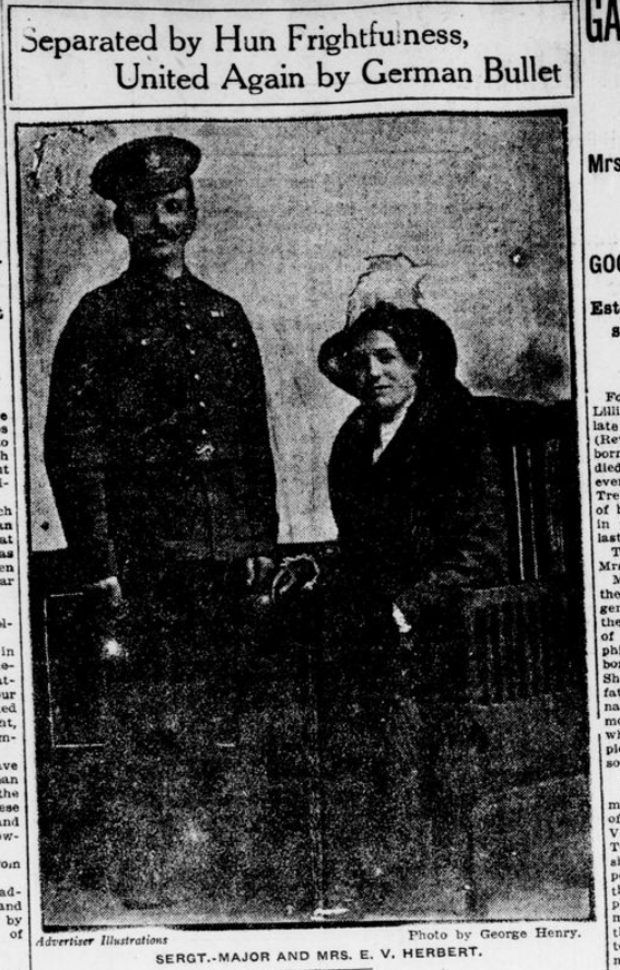 Ironically, the London Advertiser would publish that RQMS Herbert would be “United” with his wife as he was killed in action. This report was erronous, but illustrates the reverberations of the sinking of the Lusitania.