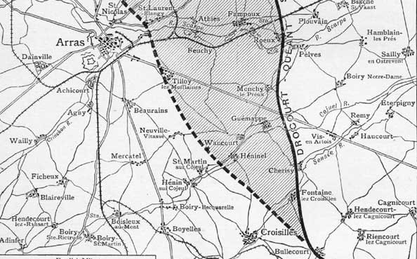 Guemappe was important as it was just South-West of the Arras-Cambria Road, the only fully navigable road in the sector. Guemappe was adjacent to the road and had a cross-roads passing through it. The 4th Canadian Infantry Brigade Narrative of Operations for the 26th, 27th, and 28th August specifically states that the 18th Battalion was repulsed by German machine gun fire but rallied, attacked, and took its objective.