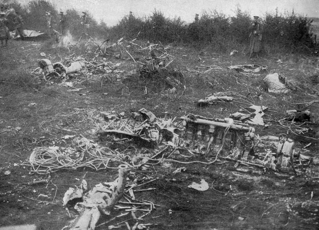 The SL 11 was the first airship to be shot down by an aircraft and this event signaled the beginning of end of the use of lighter-than-air craft use as bombers during the First World War. Thus CQMS Buchanan witnessed a singular point in military aviation history and was so impressed by the event he wrote about it the very next day to his parents. Cuffley was only 6.8 miles by road from Ponders End so Buchanan was close enough to make a trip out to see the wreck, as did thousands, many who attended the burial of the German aircrew on 6 September 1916.[iv]