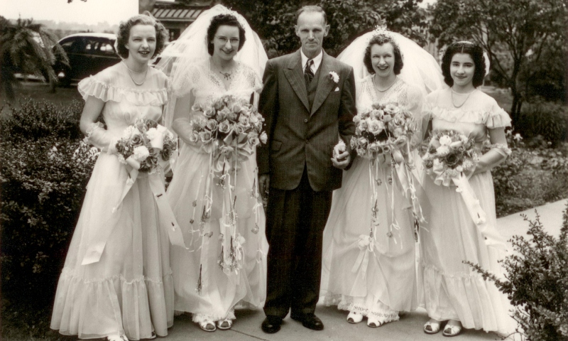 On June 19, 1948, Will got a new grey striped suit, and a secondhand, ten year old Nash –which proved to be a lemon – and gave away his daughter Marion in double ceremony (Betty being given away by Uncle Bill Billington) at St Lukes-in-the-Garden, a non-denominational little church in the Sanatorium grounds (St. Anne’s being under renovation at the time). Marion married William George Face, and Betty, Lloyd Gordon Spearman.