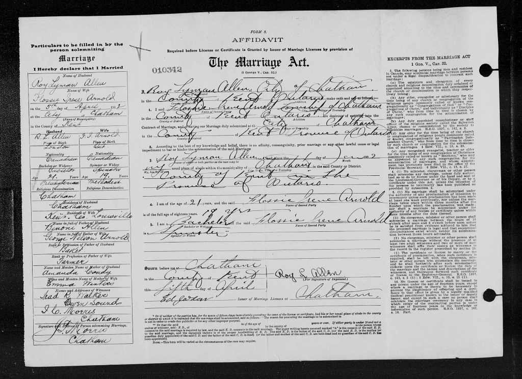 On 5 April 1912 at Chatham, Ontario a young couple began their life together. The former bachelor was 21 years old, and his new bride was all of 19. The former was of the Presbyterian faith while the latter was Methodist. Both resided in Chatham at the time of their betrothal and would make their home there.