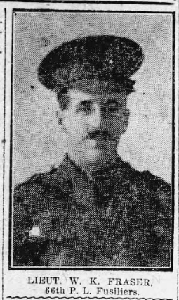 Lieutenant William Kenneth Fraser contributed to the safety of the men of the 18th Battalion during the Battle of Flers Courcelette, no doubt saving the lives of the men associated in his command and the other units of the Battalion by breaking up a German spoiling attack. His interest in community led to him becoming the mayor of Wolfville where he raised his family.