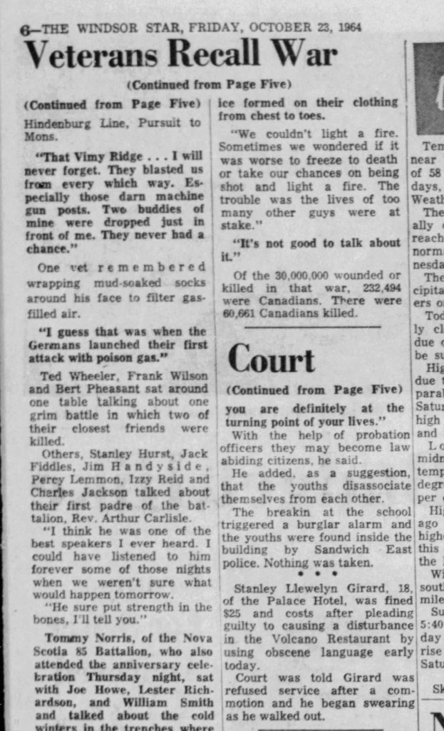 The reunion took place at Branch 644 Royal Canadian Legion[iii] located at 1570 Marentette Avenue, Windsor, Ontario and several veterans are quoted with their memories.