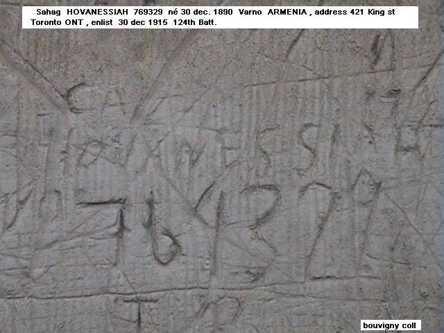 These inscriptions are found at Bouvigny Boyeffles, France, near Bully-les-Mines and the city of Lens. This is an area where the 18th Battalion served from November 1916 to January 1917, giving the soldiers of the 18th Battalion plenty of time to be in this area.
