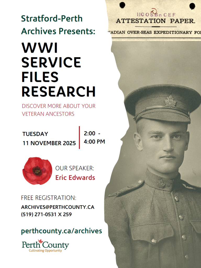 This Remembrance Day, I am presenting at the Perth and Stratford Archives and Museum.