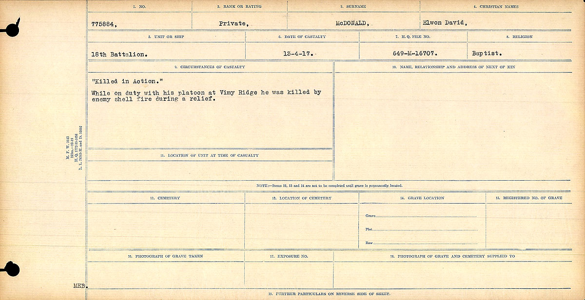 [vi] Private Elwon David McDonald, reg. no. 775884.