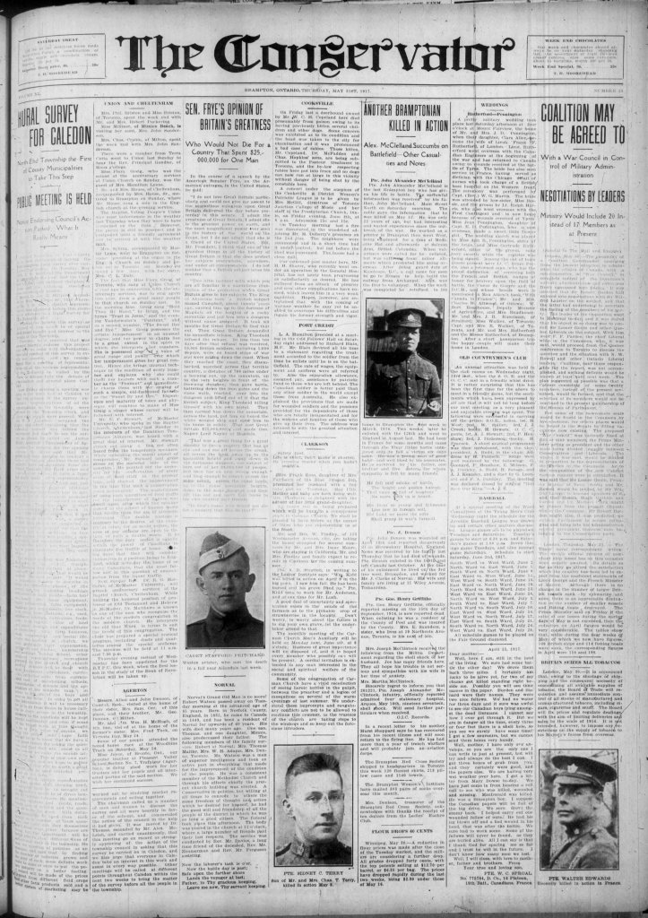 [iii] The Conservator (Brampton, Ontario). 31 May 1917. Page 1.