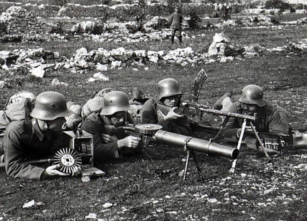 ‘World War I broke out in Europe shortly after the Lewis production began. There were no other arms in the Allied arsenal comparable to the Lewis, and it immediately gained an enviable reputation as an effective and reliable light machine gun. To take advantage of the Lewis’ portability and firepower, the British formed infantry machine gun killer teams to eliminate German machine gun emplacements. These teams were used with notable effectiveness, due in no small measure to the lethality of the Lewis. The Germans reportedly attempted to capture, and use, as many Lewis guns as possible and gave the gun the nickname “Belgian Rattlesnake.”’[vi]