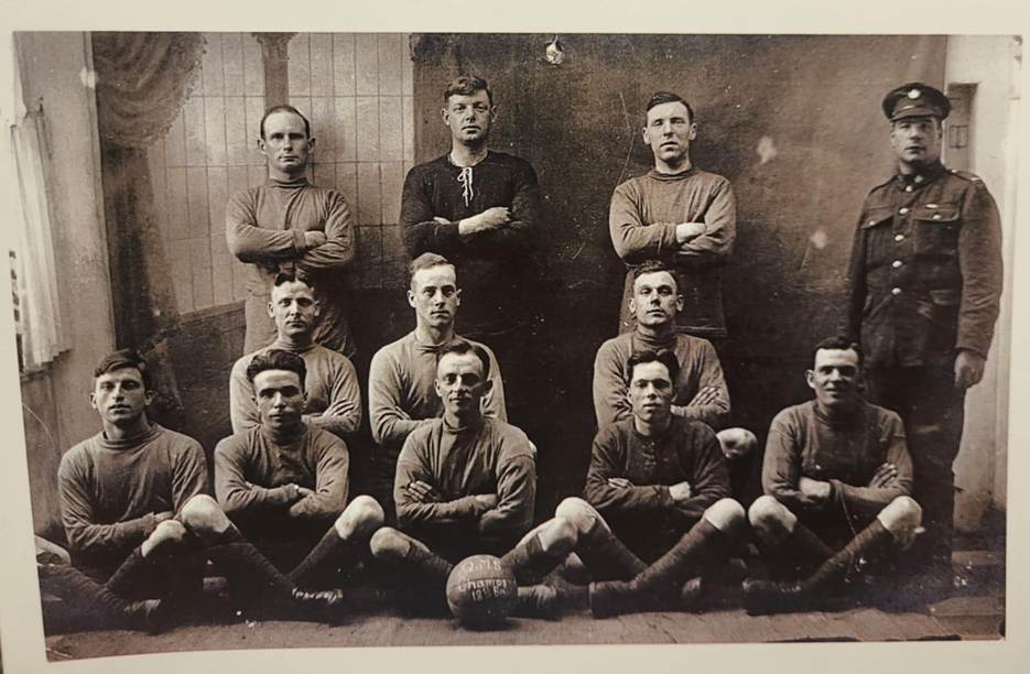 The first mention of football/soccer is in the February 1917 War Diary when the diarist writes, “Football final. Hqr. versus A Coy.” Sadly, no mention of the final score is made.
