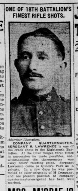 The last soldier mentioned, Quartermaster Sergeant Lawrance, was the oldest of the bunch. Enlisting at 37 years old, he had 8 years 11 months of military experience in England with the 2nd Dorset Regiment and with the 108th Regiment of Waterloo County[xiii]. He lived in Berlin with his wife when he enlisted. After the war, he moved to Halifax and worked with the Royal Canadian Regiment. He would be widowed, but remarried in 1942, at the tim,e a Canadian Pacific Railway Policeman.