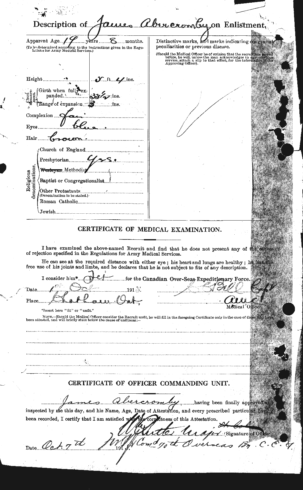 | N/A | Note | It appears that the surname Abercrombie was misspelt on the Attestation Papers and the error is eventually corrected though no notation of the correction is made in the service records. |