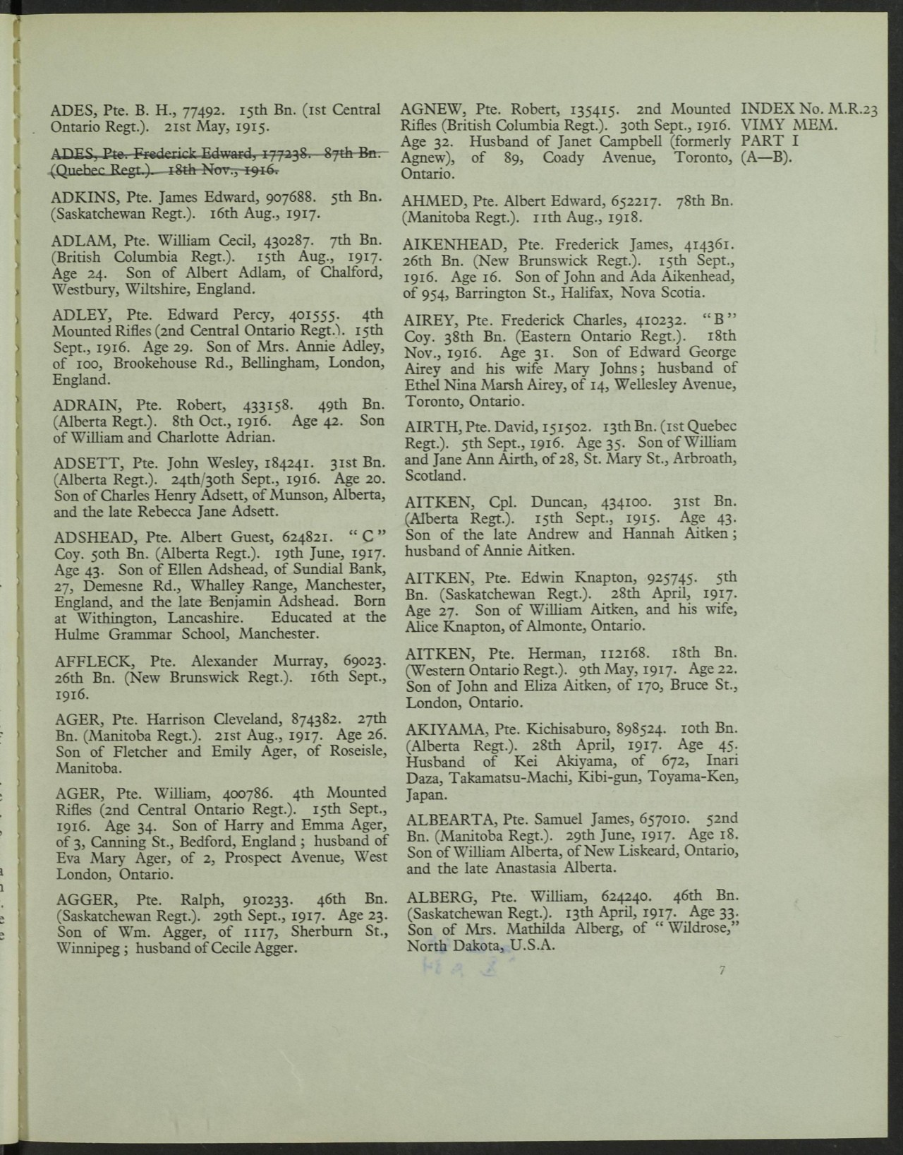 Besides his parents, Corp. Aitken is survived by three brothers, Pte. Arthur Aitken, of the 241st Battalion (Kilties), not in England; John, of the Grand Trunk Railroad; and George, of the city fire department, and four sisters, Bessie, Irene, Evelyn and Hazel, all at home.