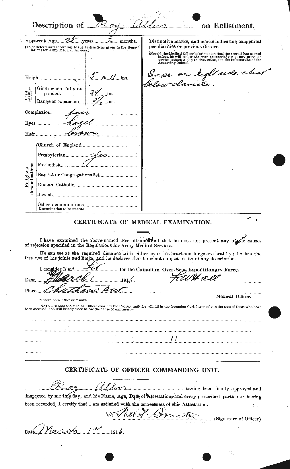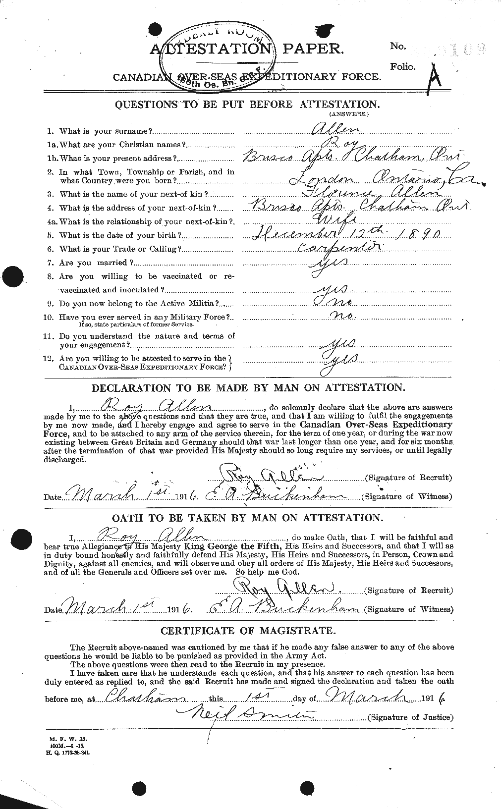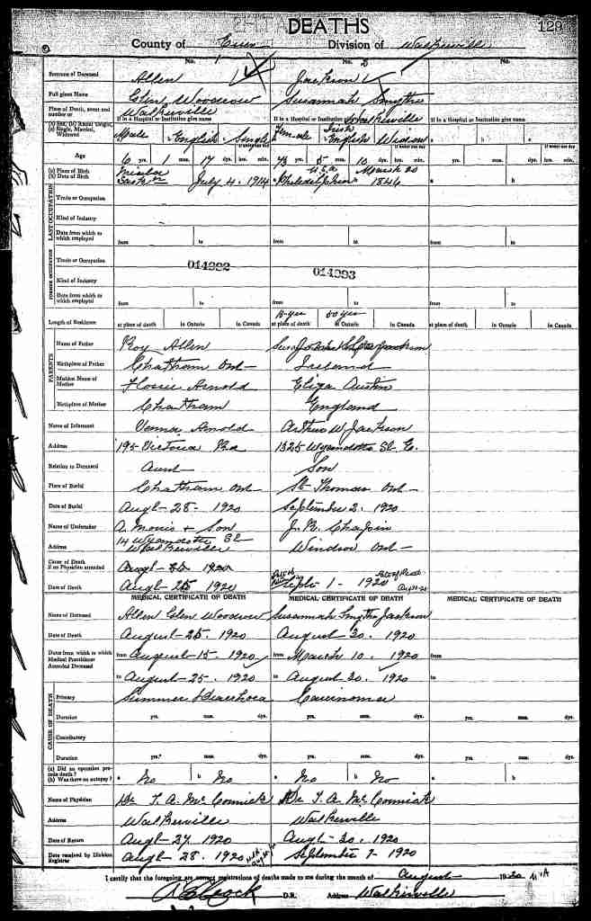 Allen, Roy Lyman: Service no. 880109 CVWM Page Digitized Service Record Source: Duty Nobly Done Roll of Honour 18th Bn. compiled and edited by Edward H. Wigney. Find-A-Grave Find-A-Grave: Canada Family Search: Private Roy Lyman Allen with his wife Florence and his son Glenn. Undated photo circa 1915. Source: CVWM “Killed in Action” Killed instantly by enemy shell fire at Passchendaele. Share this: Click to email a link to a friend (Opens in new window) Email Click to share on Facebook (Opens in new window) Facebook Click to share on X (Opens in new window) X Click to share on Reddit (Opens in new window) Reddit Click to share on LinkedIn (Opens in new window) LinkedIn Click to print (Opens in new window) Print Click to share on Tumblr (Opens in new window) Tumblr Click to share on Pocket (Opens in new window) Pocket Click to share on Pinterest (Opens in new window) Pinterest Click to share on Telegram (Opens in new window) Telegram Click to share on WhatsApp (Opens in new window) WhatsApp Like Loading...