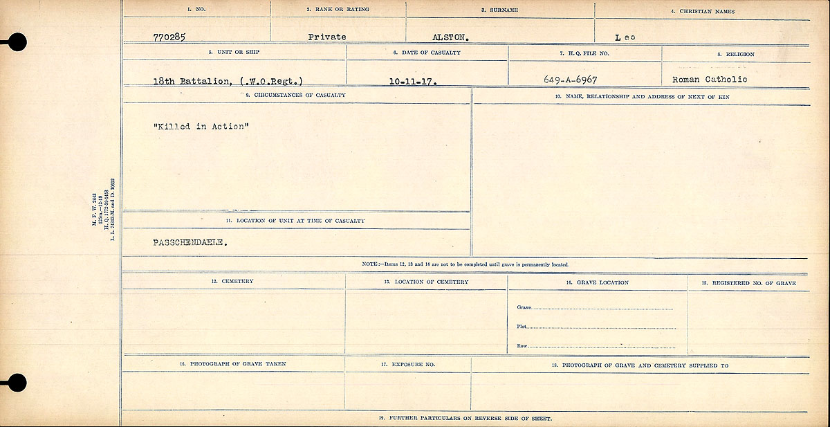 Source: Duty Nobly Done Roll of Honour 18th Bn. compiled and edited by Edward H. Wigney.