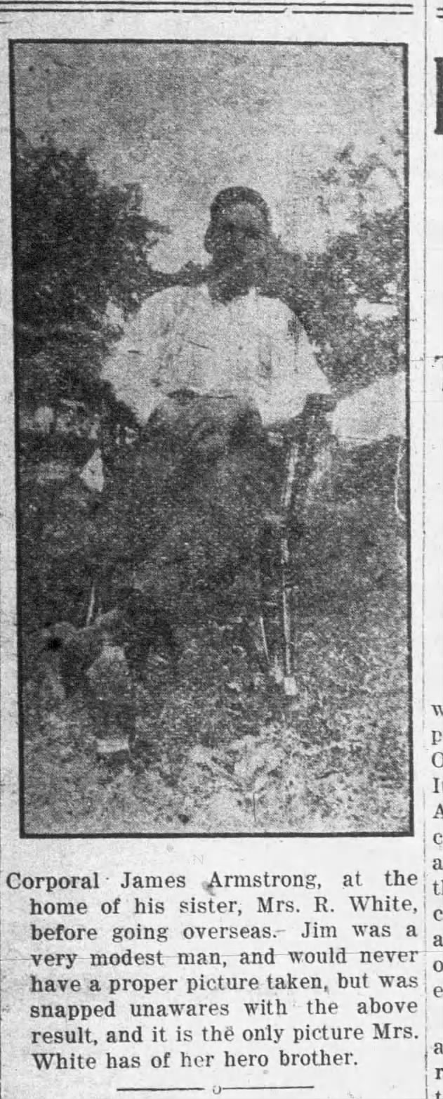 Mrs. Robert Whyte has received the following letter from the lieutenant in whose platoon her late brother, Corp. Armstrong, was, at the time of his death, accompanied by a splendid photograph, which she treasures very much, as she treasured no picture of her brother in his military uniform, as explained in our sketch of two weeks ago:
