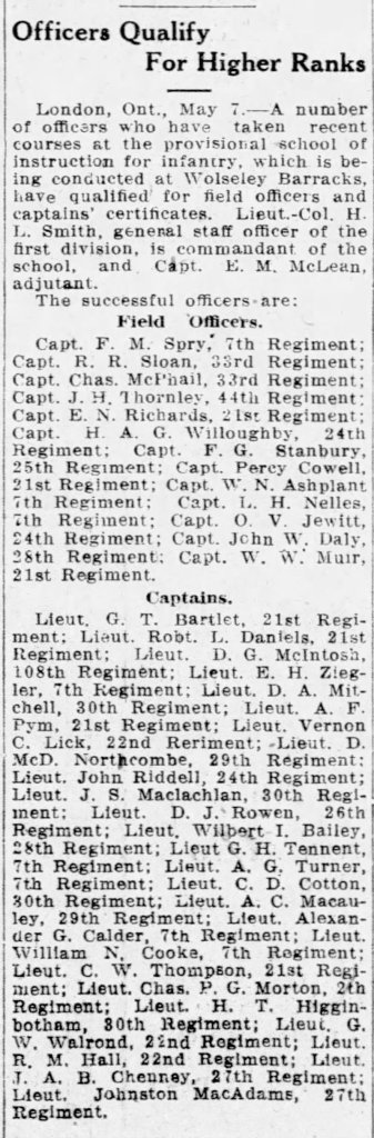 Attached to the 18th Battalion from November 28, 1914 to January 20, 1915. Then attached to 33rd Battalion.