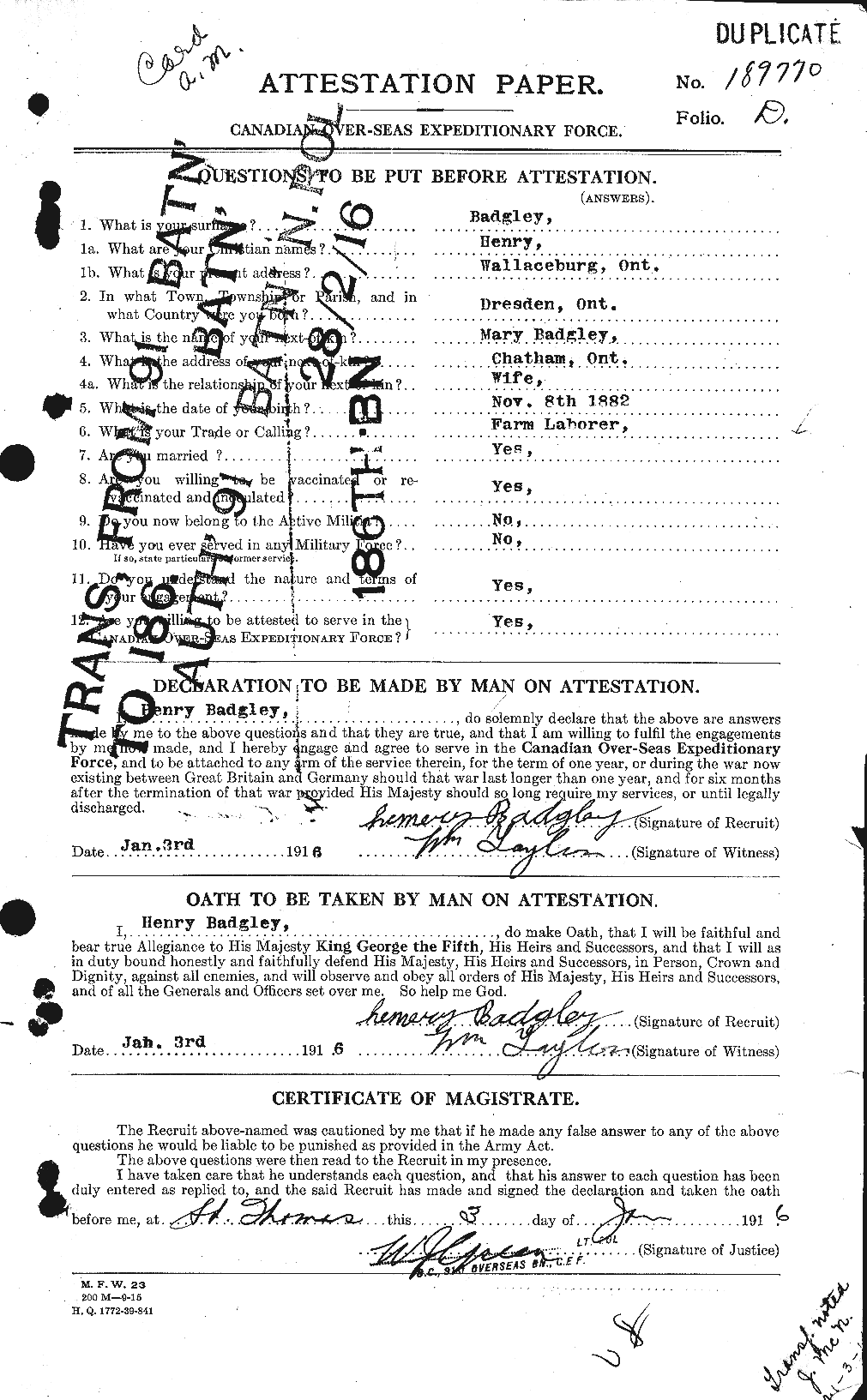 Source: Duty Nobly Done Roll of Honour 18th Bn. compiled and edited by Edward H. Wigney.