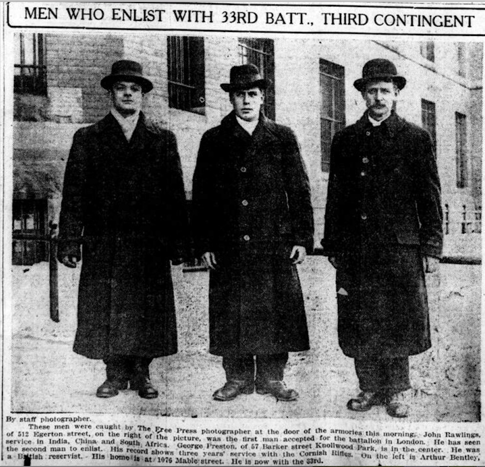 Bentley, Arthur: Service no. 54362 CVWM Page Digitized Service Record Source: Duty Nobly Done Roll of Honour. Find-A-Grave Arthur Bentley is on the left. Source: Operation Picture Me via 18th Battalion Facebook Group. From the London Free Press. January 1915. Source: Operation Picture Me via The 18th Battalion Facebook Group. London Free Press. March 22, 1919. Share this: Click to email a link to a friend (Opens in new window) Email Click to share on Facebook (Opens in new window) Facebook Click to share on X (Opens in new window) X Click to share on Reddit (Opens in new window) Reddit Click to share on LinkedIn (Opens in new window) LinkedIn Click to print (Opens in new window) Print Click to share on Tumblr (Opens in new window) Tumblr Click to share on Pocket (Opens in new window) Pocket Click to share on Pinterest (Opens in new window) Pinterest Click to share on Telegram (Opens in new window) Telegram Click to share on WhatsApp (Opens in new window) WhatsApp Like Loading...