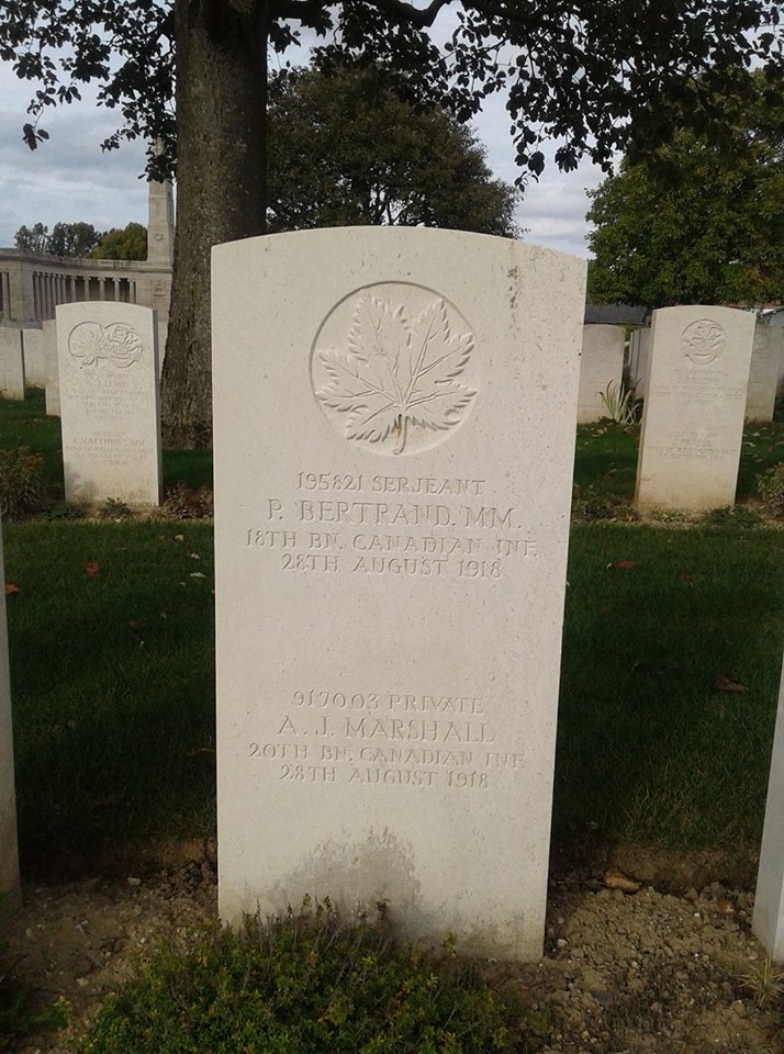 Sergeant Bertrand is remembered with honour in the Vis-En-Artois British Cemetery in Haucourt, Pas de Calais, France.