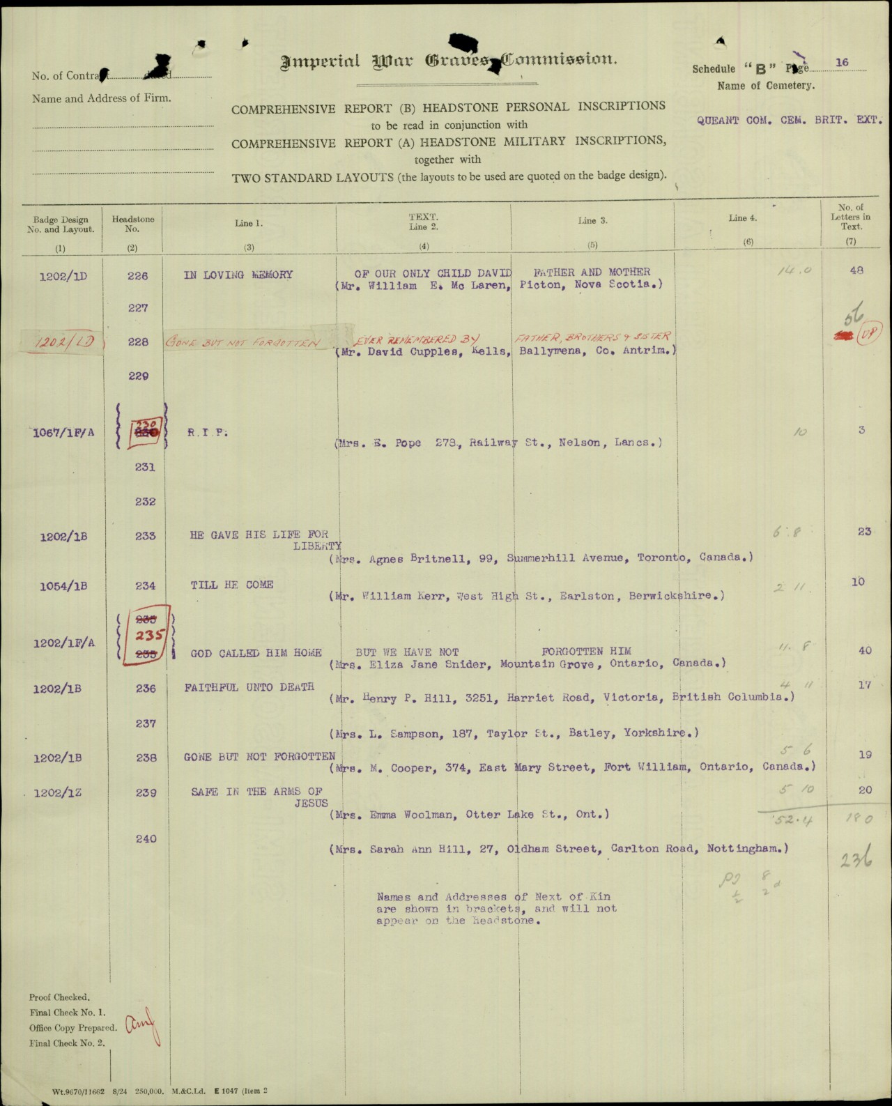 John’s brother Henry (Harry) Betton served during the Great War, also making the ultimate sacrifice as he was reported as Killed in Action two months earlier on 14 August 1918. John’s mother Lavinia stayed in Kenora and died 14 January 1922. His sister Ada married John Arthur Bull (who served during the latter part of the war) in 1921 in Kenora, sister Florence married Colin Hedley Affleck in 1924 also in Kenora, brother Albert married Sylvia Fuller whose father and brother also served, her brother Charles being Killed in Action 26 October 1917, and brother Fred married Muriel Cull.