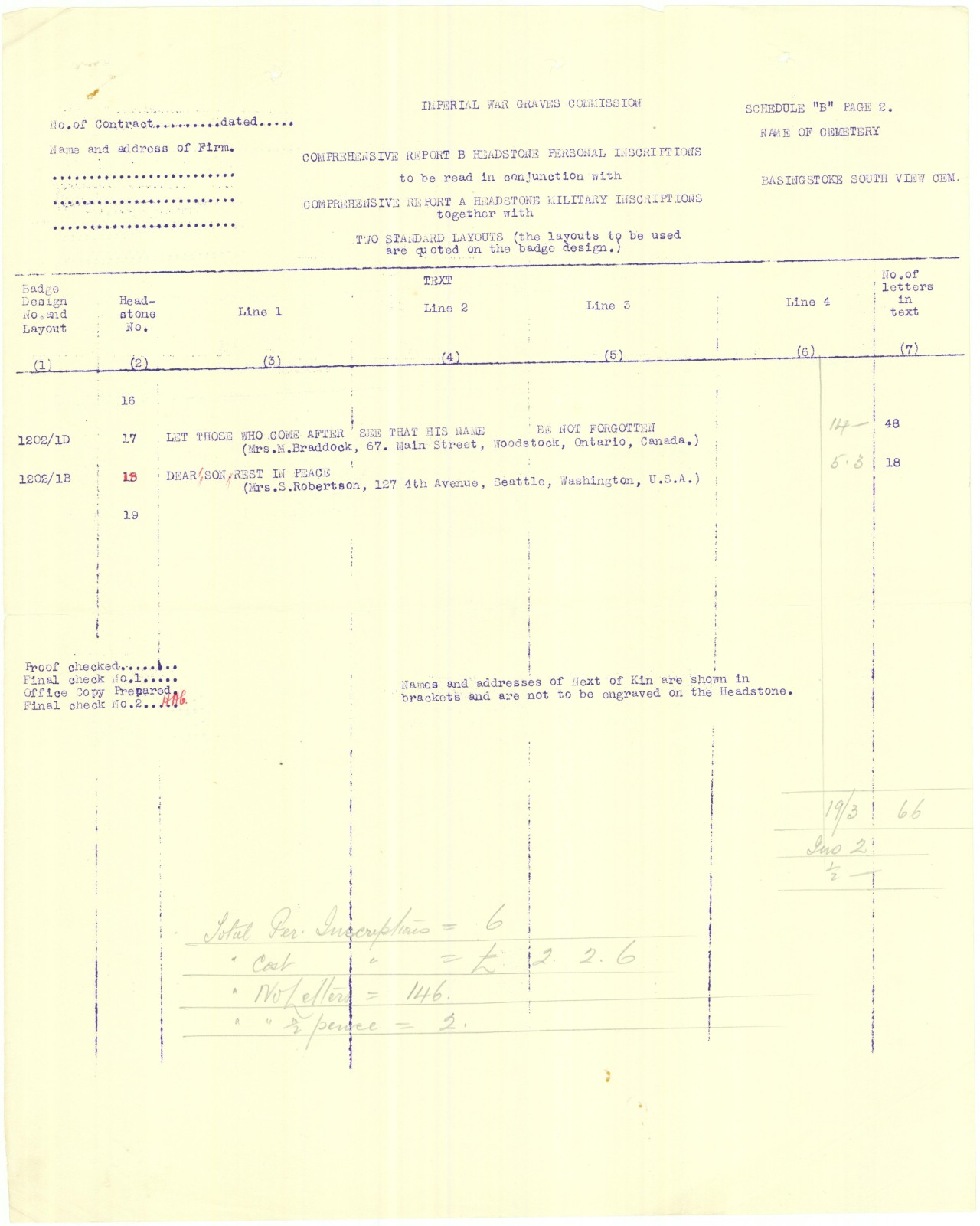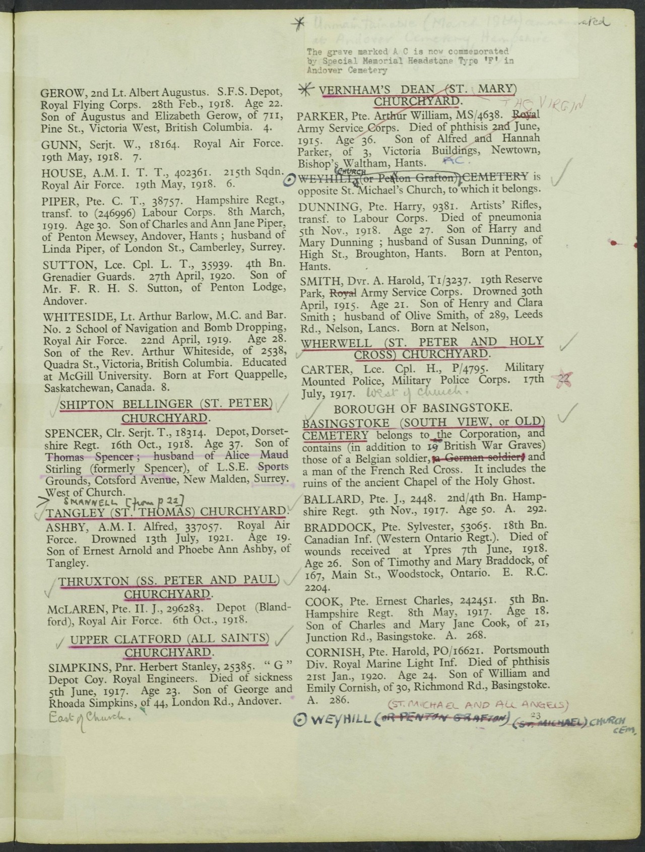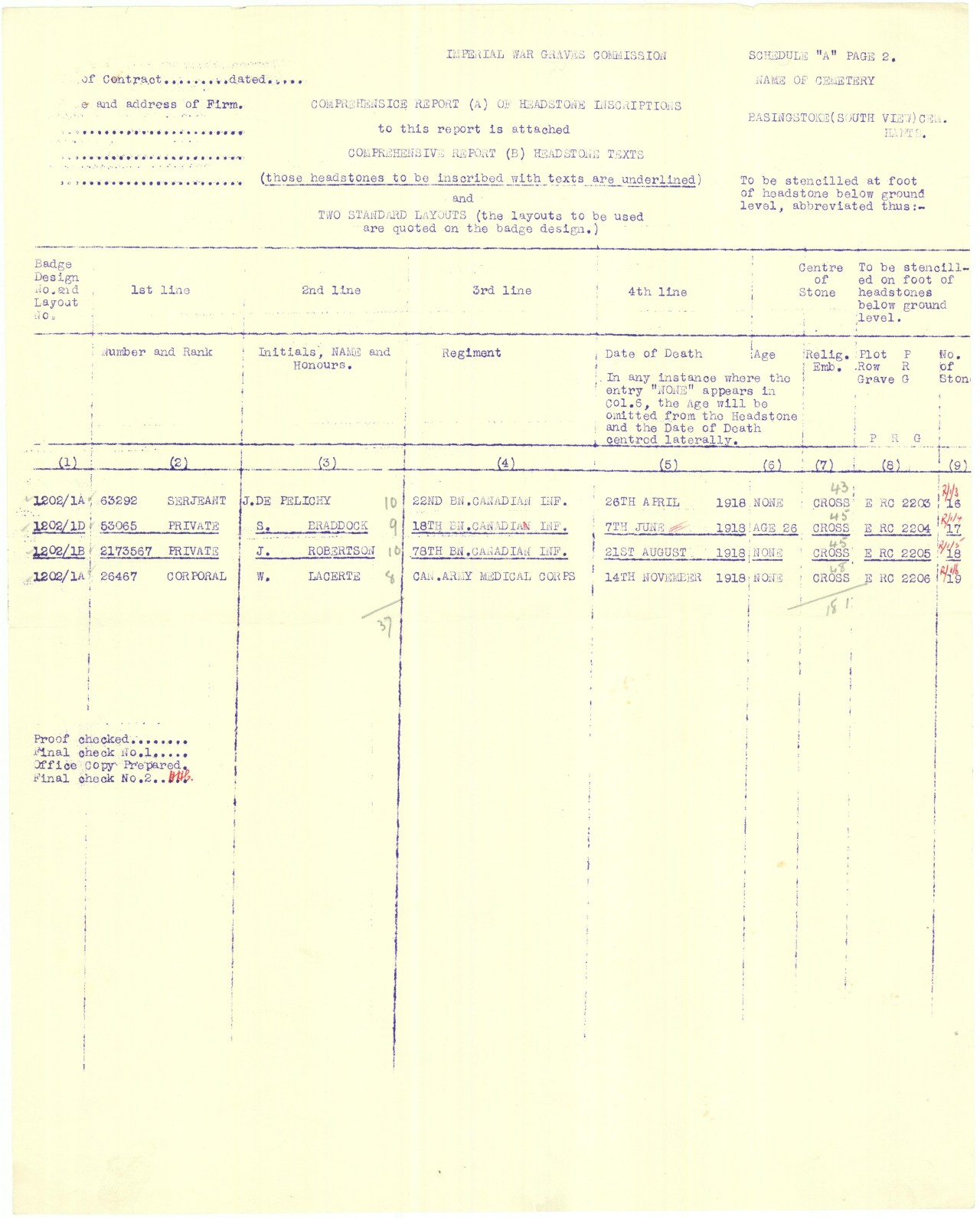 | On or about June 8, 1918 | Buried | Buried at plot E.R.C. 2204, South View Cemetery, Basingstoke, Basingstoke and Deane Borough, Hampshire, England.