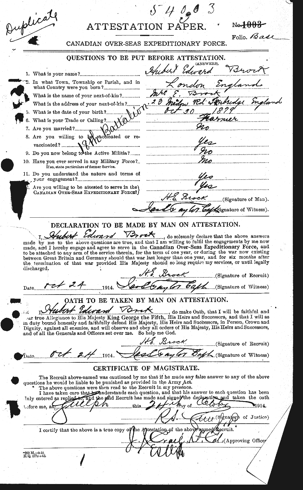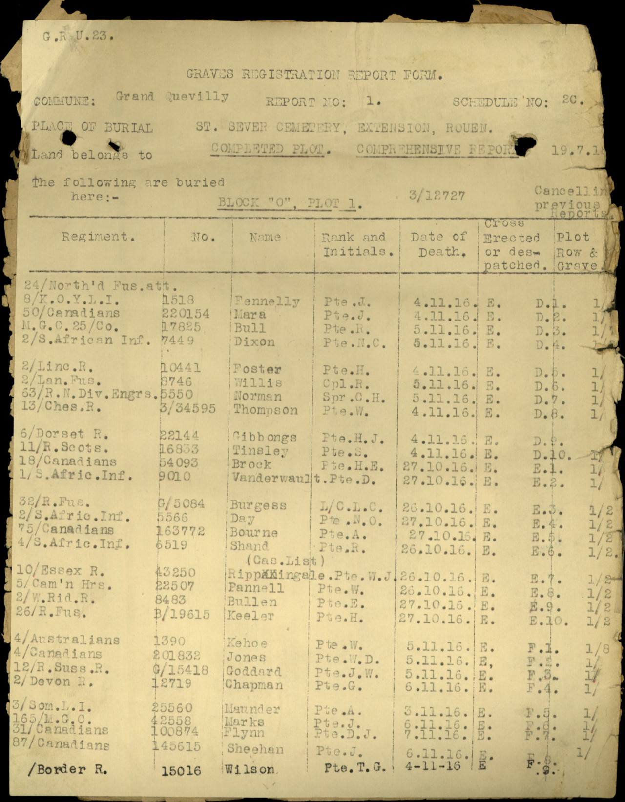 Brock, Hubert Edward: Service no. 54003 CVWM Page Digitized Service Record Source: October 1916 casualty. Find-A-Grave Source: Toronto Telegram. October 1916. Via David Archer. “Died of Wounds” (Gunshot Wounds, Multiple) at No. 9 General Hospital, Rouen. Share this: Click to email a link to a friend (Opens in new window) Email Click to share on Facebook (Opens in new window) Facebook Click to share on X (Opens in new window) X Click to share on Reddit (Opens in new window) Reddit Click to share on LinkedIn (Opens in new window) LinkedIn Click to print (Opens in new window) Print Click to share on Tumblr (Opens in new window) Tumblr Click to share on Pocket (Opens in new window) Pocket Click to share on Pinterest (Opens in new window) Pinterest Click to share on Telegram (Opens in new window) Telegram Click to share on WhatsApp (Opens in new window) WhatsApp Like Loading...
