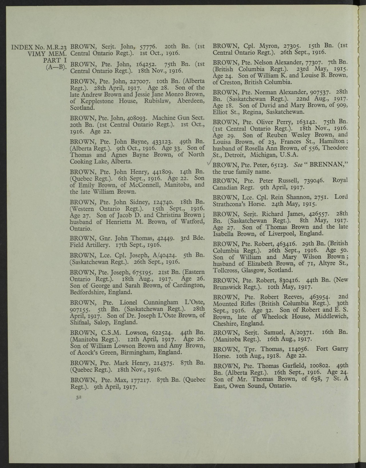 Brother, Brown, Jacob Lavern: Service no. 124733, also served with the 18th Battalion.