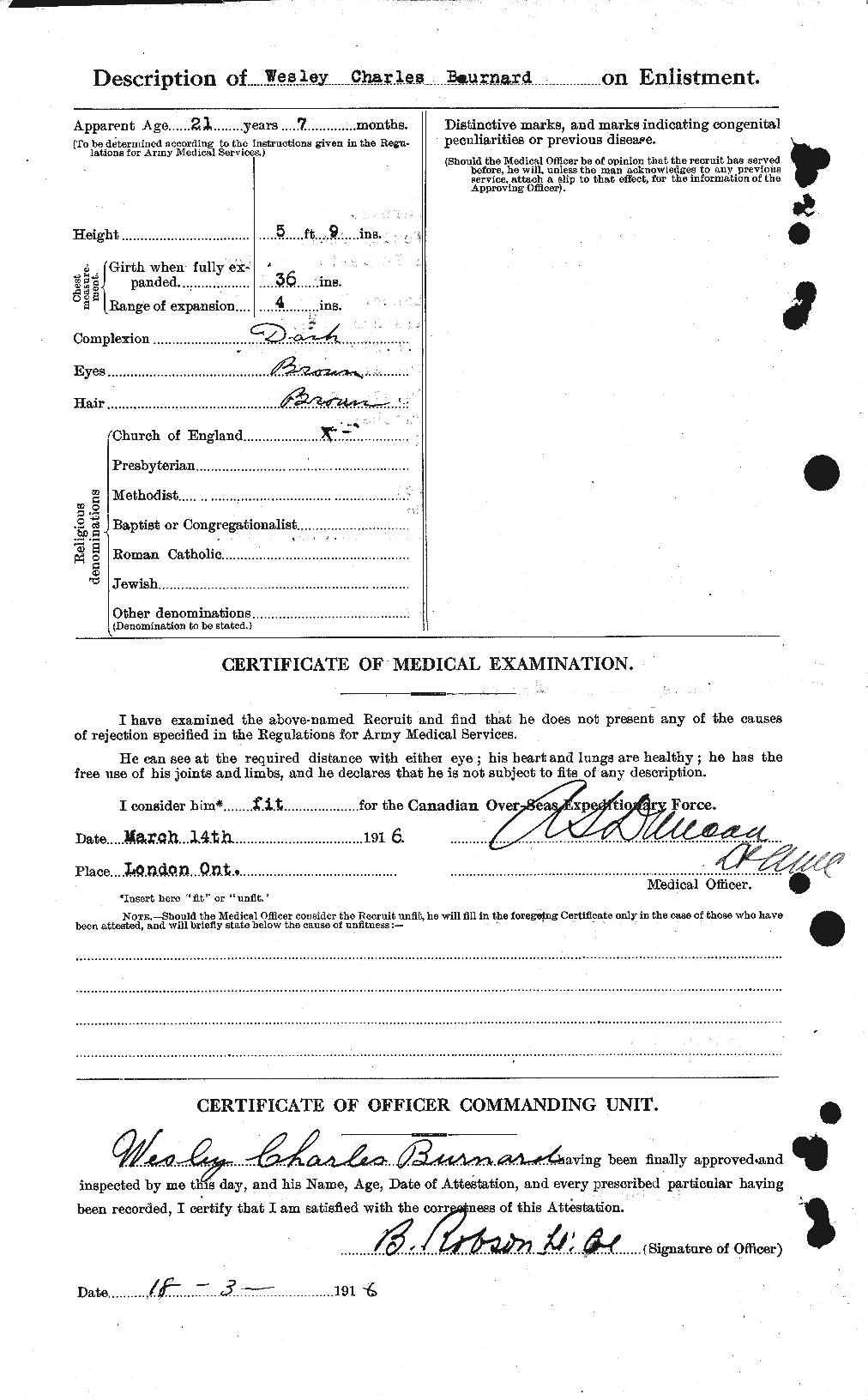 And the honor of his race.PTE. WESLEY CHARLES BURNARD
