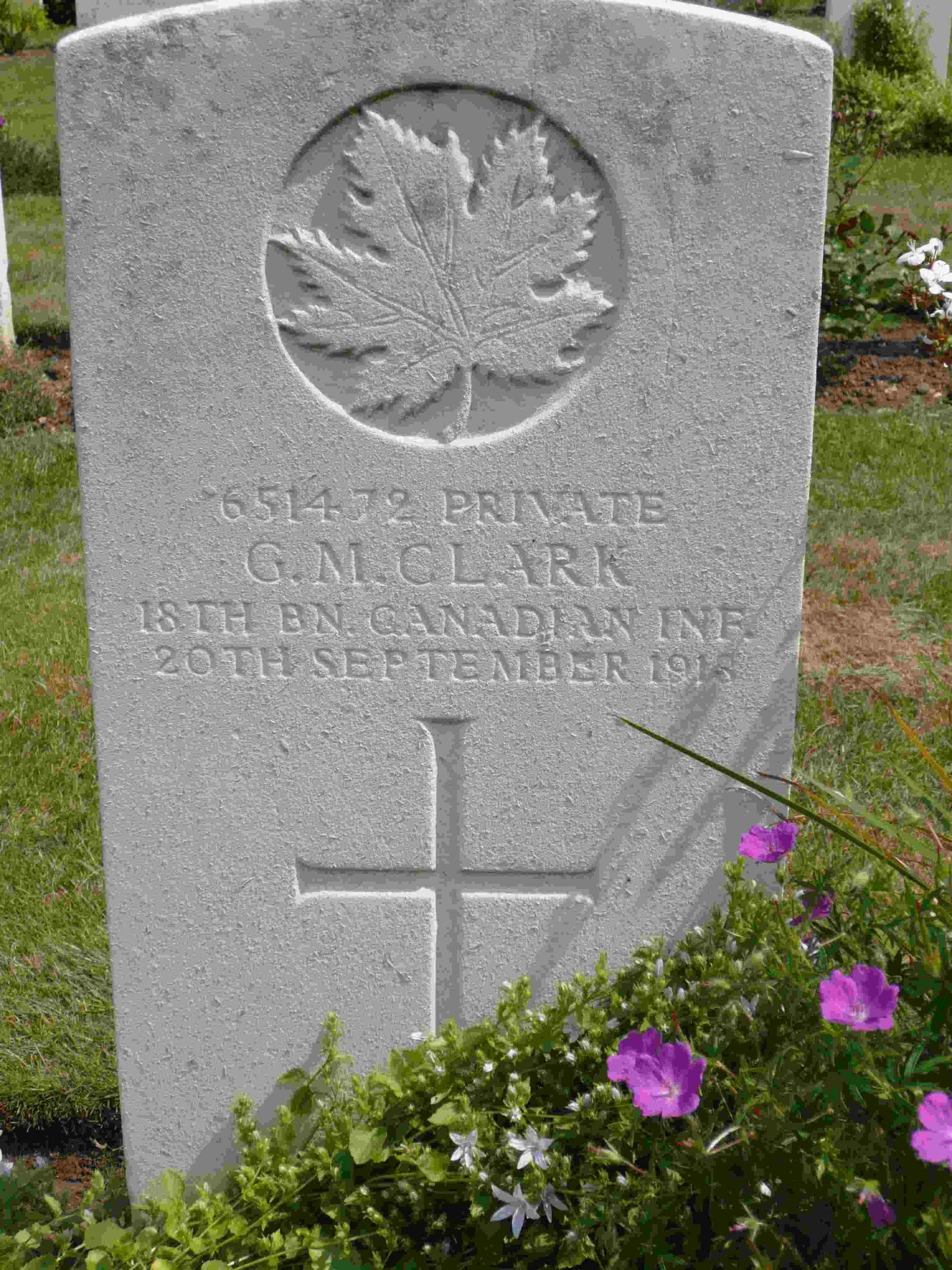 “Private Clark arrived in England on October 28, 1916. He had enlisted with the 160th Bruce Battalion and was Taken off Strength from them and was posted to the 4th Reserve Battalion at the beginning of March 1918. He was then posted to the 18th Battalion then goes into France and then joins his unit in the field on April 12, 1918.