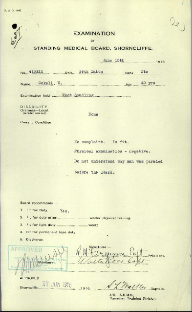There are two little boys, Harry, age 9, and Freddie Cockill [sic] who live with their grandparents, Mr. and Mrs. Robert Cockill [sic], 320 Gladstone avenue [Toronto], who will never see their soldier daddy, Pte. Wm. Cockill [sic], again. He went away two years ago last January, and to-day he is reported killed at Vimy Ridge on April 12. Pte. Cockill [sic], who enlisted in a Belleville battalion, was drafted into a London battalion, and had been in the trenches since last June. Pte. Wm. Cockill [sic] was the eldest son, and was born in Caledon 3[6] years ago. He was educated in Shelburne, and came to Toronto 13 years ago.